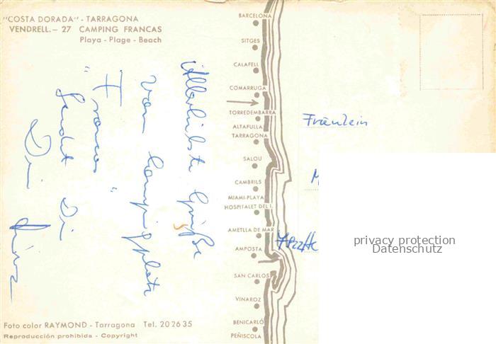 74085102 Vendrell El Vendrell Tarragona ES Camping Francas Playas Fliegeraufnahmen postalisch nicht gelaufen Erhaltung siehe scans [WerneD78] KatCode: 11510