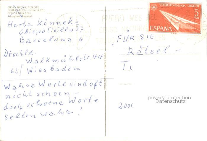 old postcard Vendrell Grand Hotel Europe postalisch gelaufen Erhaltung siehe scans