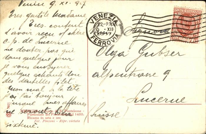 old postcard Venezia Venedig postalisch gelaufen
