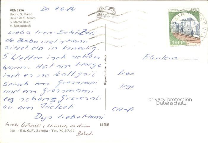 old postcard Venezia Venedig Bacino S. Marco postalisch gelaufen Erhaltung siehe scans