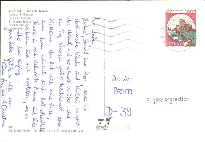 old postcard Venezia Venedig Bacino San Marco Isola di San Giorgio notturno postalisch gelaufen Erhaltung siehe scans