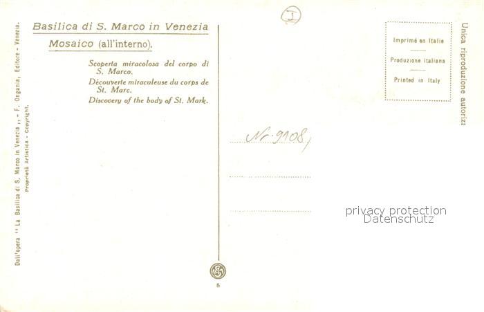 Venezia Venedig Basilica di San Marco postalisch nicht gelaufen Erhaltung siehe scans [WerneD78]