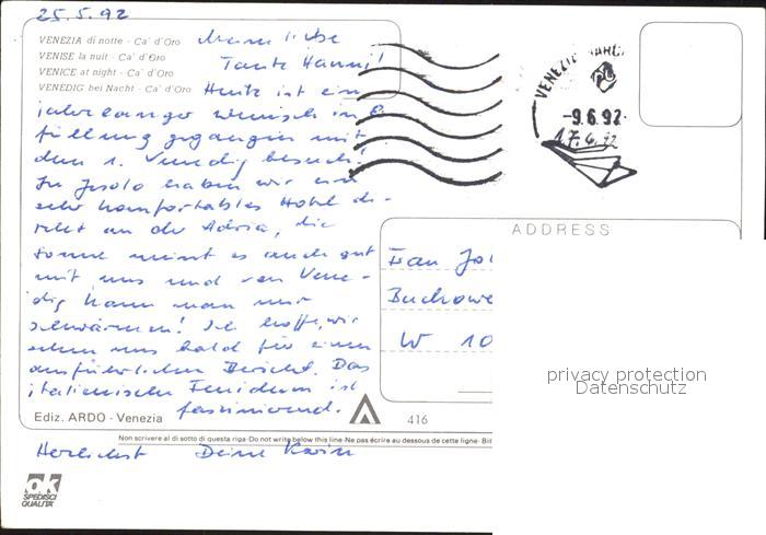 old postcard Venezia Venedig Ca d Oro postalisch gelaufen Erhaltung siehe scans