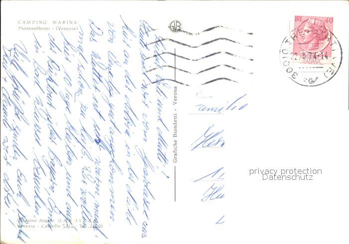 old postcard Venezia Venedig Camping Marina Puntasabbioni Vista parcial postalisch gelaufen Erhaltung siehe scans