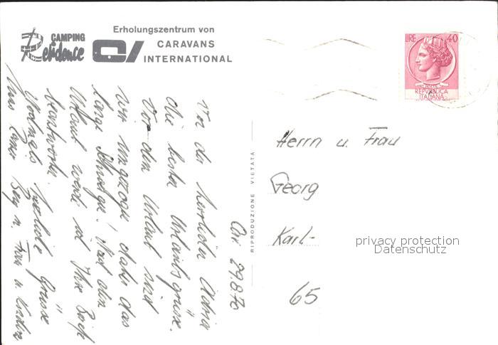 old postcard Venezia Venedig Camping Residence Lido di Cavallino postalisch gelaufen Erhaltung siehe scans