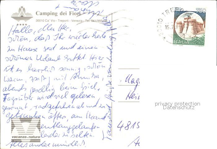 old postcard Venezia Venedig Camping Village Dei Fiori postalisch gelaufen Erhaltung siehe scans