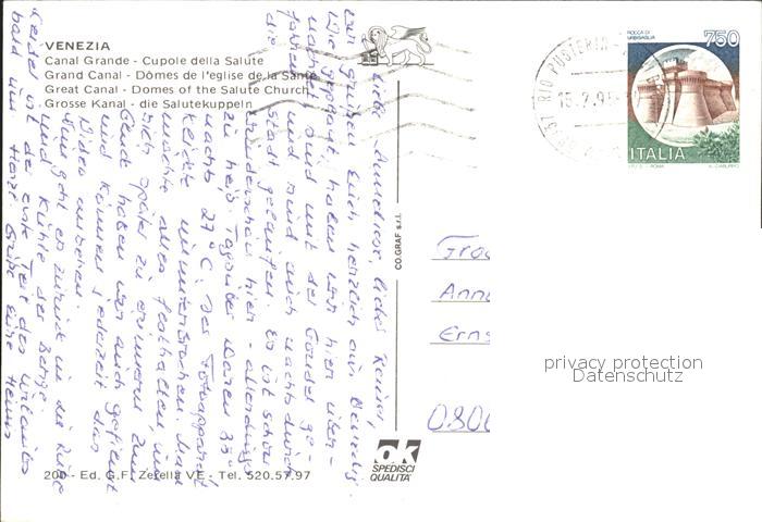 old postcard Venezia Venedig Canal Grande Cupole della Salute Salutekuppel postalisch gelaufen Erhaltung siehe scans