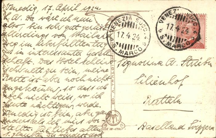 old postcard Venezia Venedig Canal Grande in festa Boot postalisch gelaufen