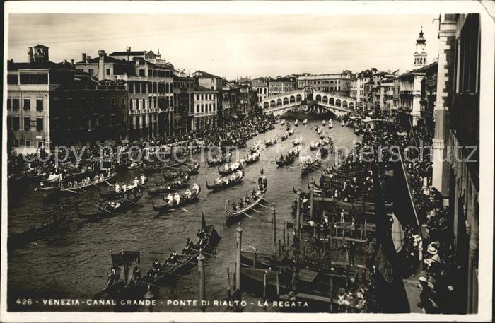 old postcard Venezia Venedig Canal grande – ponte di Rialto – la regata postalisch gelaufen Erhaltung siehe scans