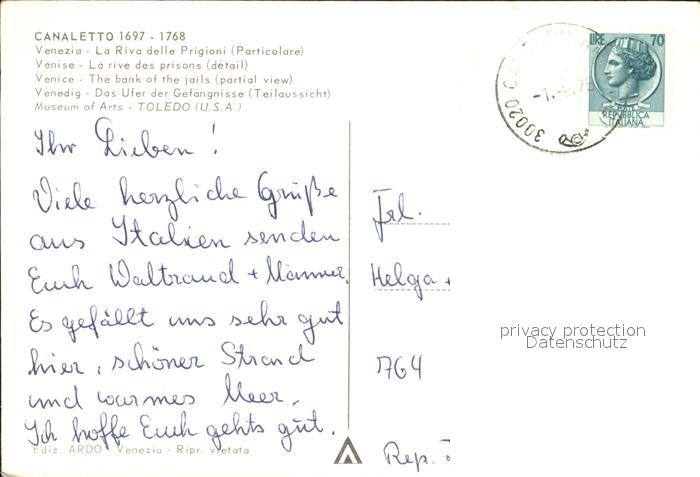 old postcard Venezia Venedig Canaletto la Riva delle Prigioni postalisch gelaufen Erhaltung siehe scans
