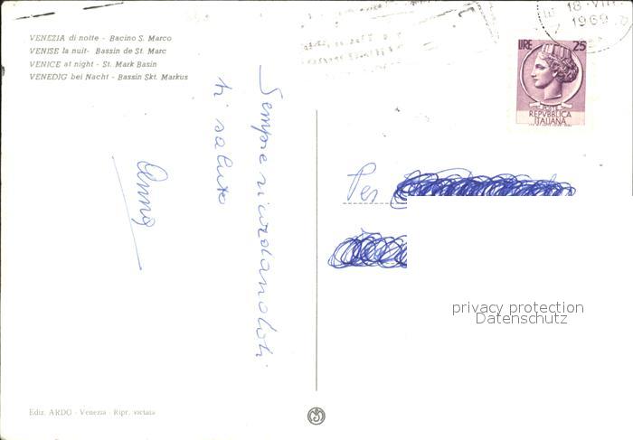 old postcard Venezia Venedig di notte Bacino San Marco postalisch gelaufen Erhaltung siehe scans
