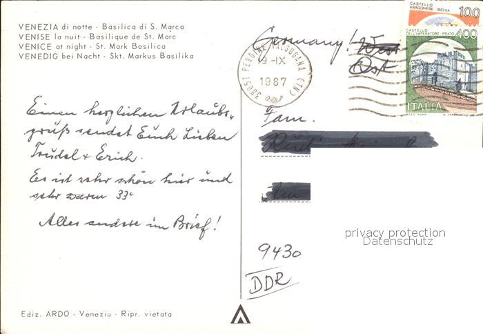 old postcard Venezia Venedig di notte Basilica di San Marco postalisch gelaufen Erhaltung siehe scans