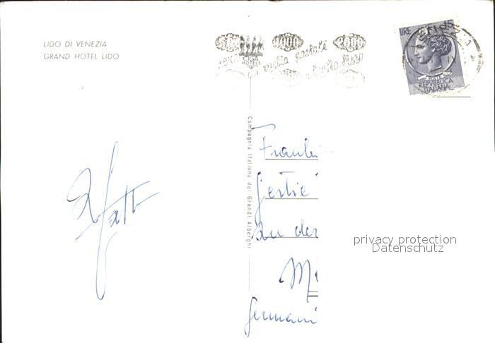 old postcard Venezia Venedig Grand Hotel Lido postalisch gelaufen Erhaltung siehe scans