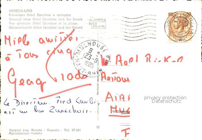 old postcard Venezia Venedig Hotel Exelsior Strand postalisch gelaufen Erhaltung siehe scans