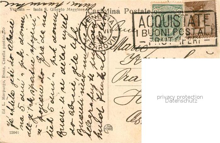 old postcard Venezia Venedig Isola San Giorgio Maggiore postalisch gelaufen Erhaltung siehe scans [KathaD81]