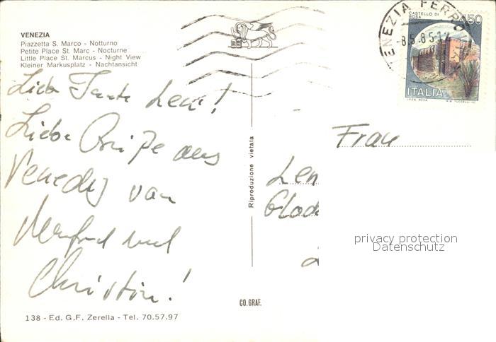 old postcard Venezia Venedig Kleiner Markusplatz Nachtansicht postalisch gelaufen Erhaltung siehe scans