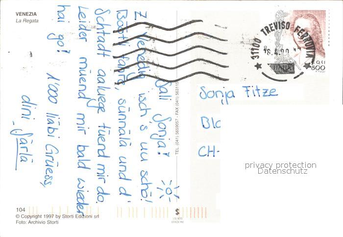 old postcard Venezia Venedig La Regata postalisch gelaufen Erhaltung siehe scans