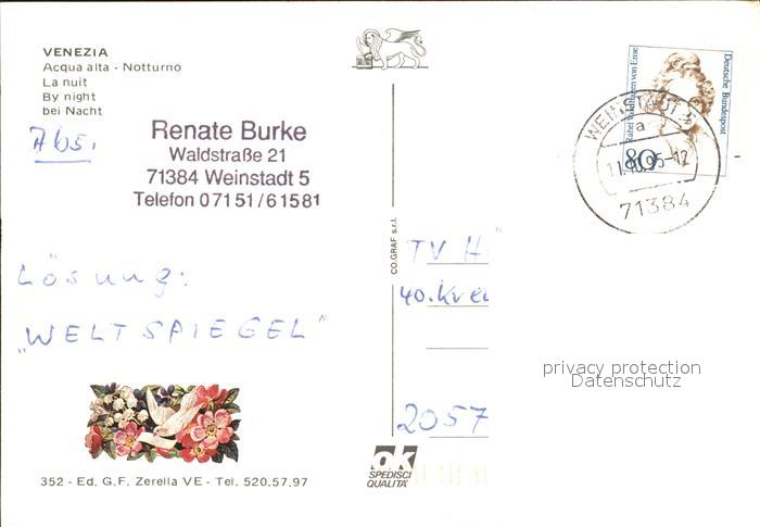 old postcard Venezia Venedig Nacht postalisch gelaufen Erhaltung siehe scans
