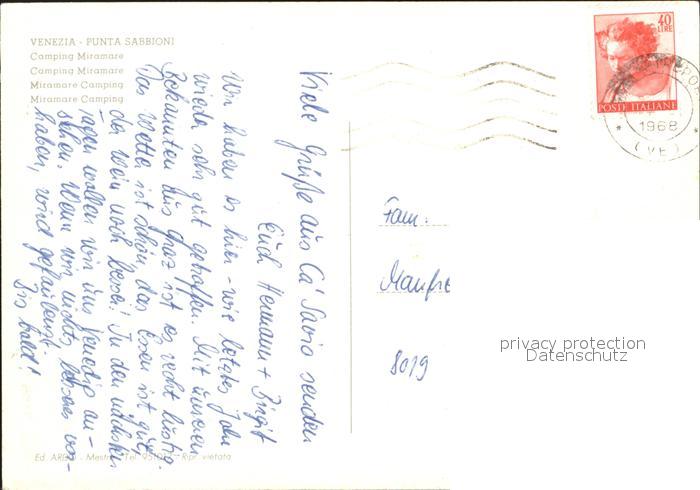 old postcard Venezia Venedig Punta Sabbioni Camping Miramare Eingang postalisch gelaufen Erhaltung siehe scans