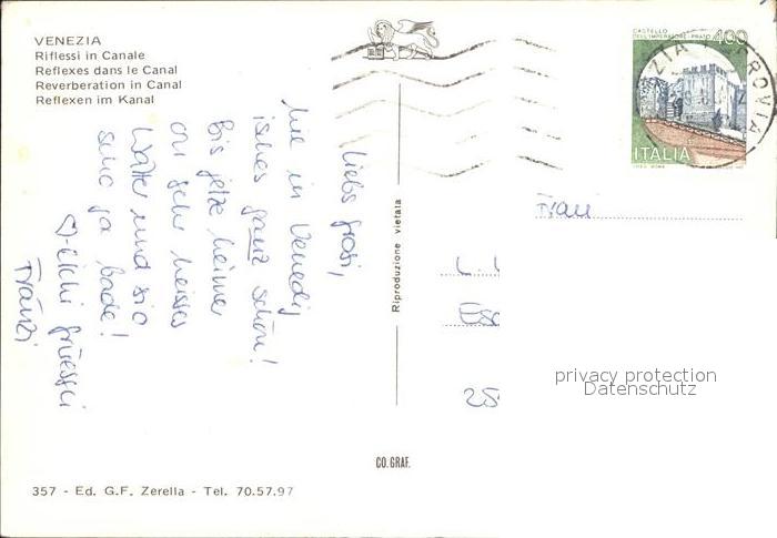 old postcard Venezia Venedig Reflexen im Kanal postalisch gelaufen Erhaltung siehe scans