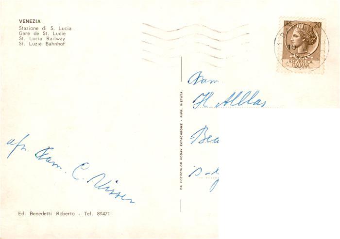 old postcard Venezia Venedig Stazione di Santa Lucia postalisch gelaufen Erhaltung siehe scans [FriedD77]