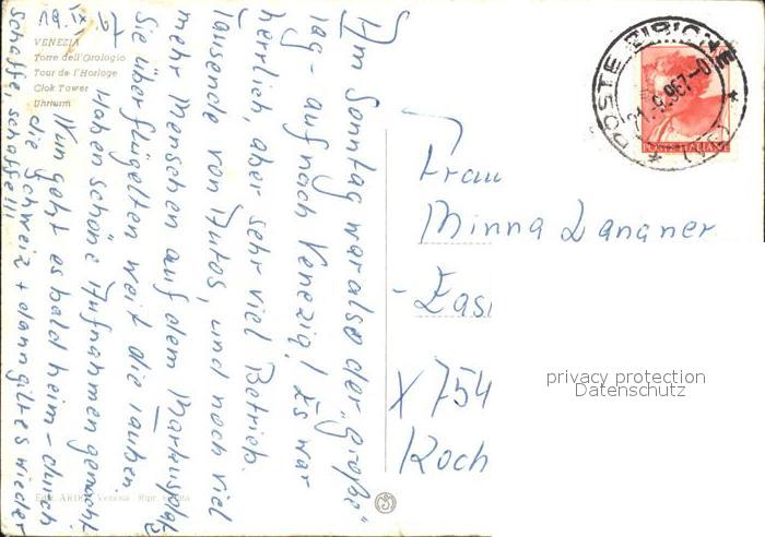 old postcard Venezia Venedig Torre dell Orologio postalisch gelaufen Erhaltung siehe scans