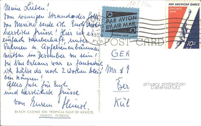 72161917 old postcard Venice Florida Beach Casino Golf of Mexico postalisch gelaufen Erhaltung siehe scans KatCode: 14140110000000