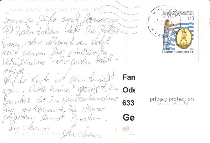 old postcard Venice Mykonos Brandung Haeuserpartie am Meer Vollmond postalisch gelaufen Erhaltung siehe scans