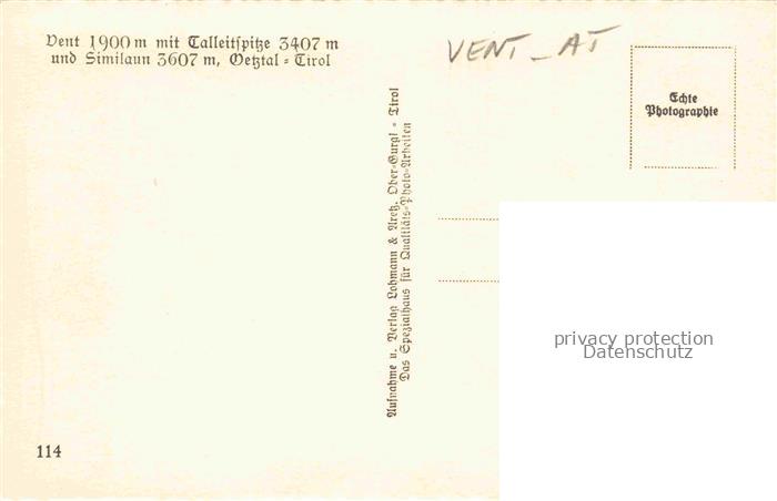 74121871 Vent oetztal Tirol AT Panorama Blick gegen Talleitspitze Similaun oetztaler Alpen postalisch nicht gelaufen Erhaltung siehe scans [FriedD77] Frie Katcode 11390334070220