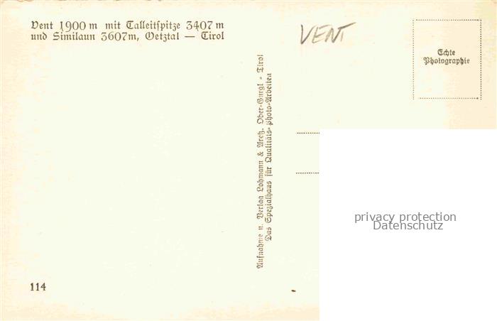 74037136 Vent oetztal Tirol AT Panorama mit Talleitspitze und Similaun oetztaler Alpen postalisch nicht gelaufen Erhaltung siehe scans [FriedD77] KatCode: 11390334070220
