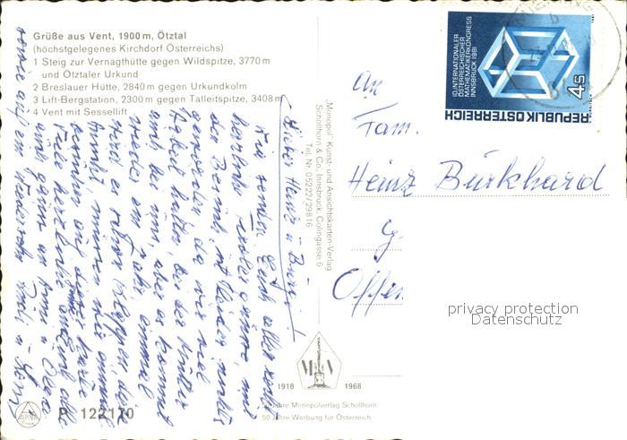 72437567 alte Postkarte Vent Tirol Breslauerhuette Lift-Bergstation Wildspitze postalisch gelaufen Erhaltung siehe scans KatCode: 11390334070220