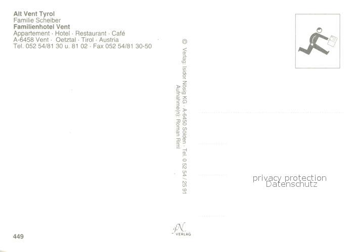 72942503 Vent Tirol Hotel Alt Vent postalisch nicht gelaufen Erhaltung siehe scans [LiesaD40] KatCode: 11390334070220