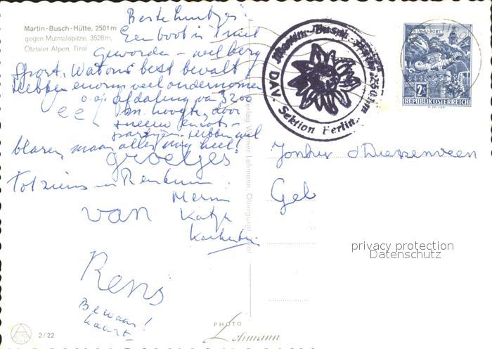 72254323 alte Postkarte Vent Tirol Martin Busch Huette gegen Mutmalspitze oetztaler Alpen postalisch gelaufen Erhaltung siehe scans KatCode: 11390334070220