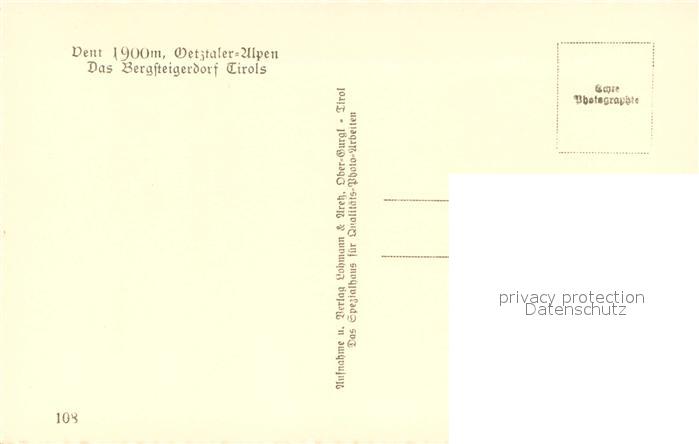 73626159 Vent Tirol mit Kirche und oetztaler Alpen postalisch nicht gelaufen Erhaltung siehe scans [FriedD77] KatCode: 11390334070220