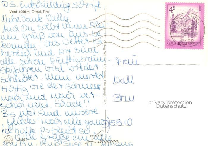 73626075 alte Postkarte Vent Tirol Panorama Kirche Skipisten postalisch gelaufen Erhaltung siehe scans [FriedD77] KatCode: 11390334070220