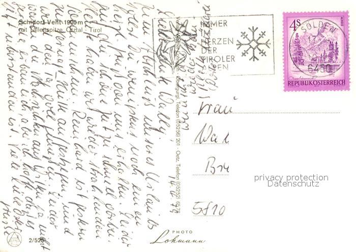 73598580 alte Postkarte Vent Tirol Talleitspitze postalisch gelaufen Erhaltung siehe scans [PaolaD17] KatCode: 11390334070220