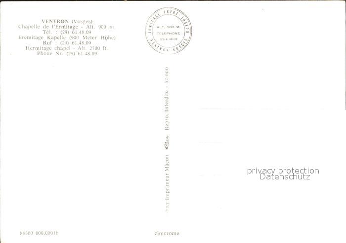 12310480 Ventron Vosges Chapelle de l’Ermitage postalisch nicht gelaufen Erhaltung siehe scans KatCode: 11170088188500
