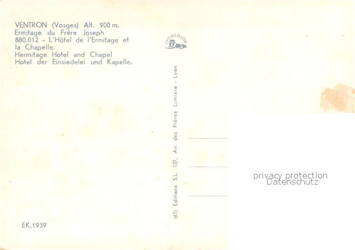 13719735 Ventron Vosges Ermitage du Frère Joseph Hôtel de l Ermitage et la Chapelle postalisch nicht gelaufen Erhaltung siehe scans [FriedD77] Frie Katcode 11170088188500