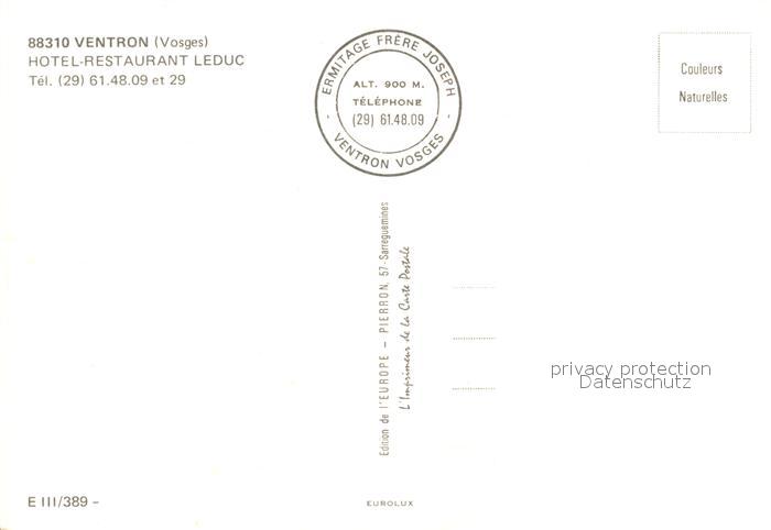 13233186 Ventron Vosges Hotel Leduc postalisch nicht gelaufen Erhaltung siehe scans [NatalD47] KatCode: 11170088188500