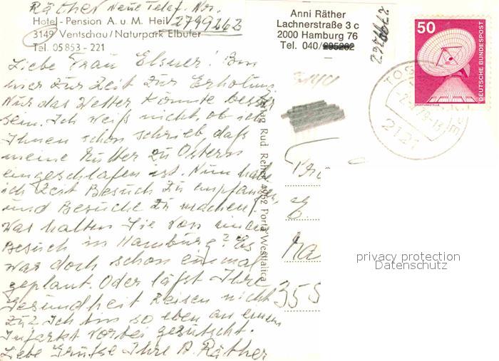 72878870 alte Postkarte Ventschau Hotel Pension Heil Naturpark Elbufer Schwanenteich postalisch gelaufen Erhaltung siehe scans [FriedD77] KatCode: 11110003355037