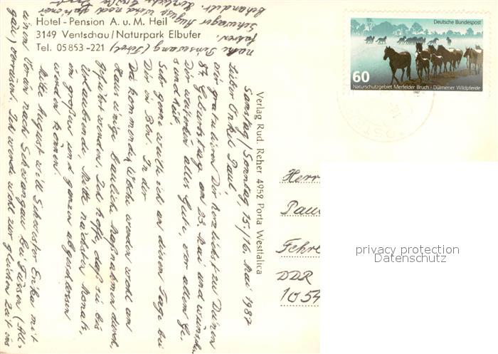 73716497 alte Postkarte Ventschau Naturpark Elbufer Hotel A und M Heil Pension Haupthaus Restaurant Gaestehaus mit Teich Aufenthaltsraeume Speisezimmer postalisch gelaufen Erhaltung siehe scans [WerneD78] KatCode: 11110003355037