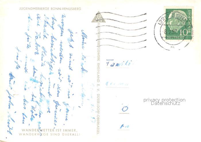 73726009 alte Postkarte Venusberg Bonn Jugendherberge postalisch gelaufen Erhaltung siehe scans [FriedD77] KatCode: 11110005314000