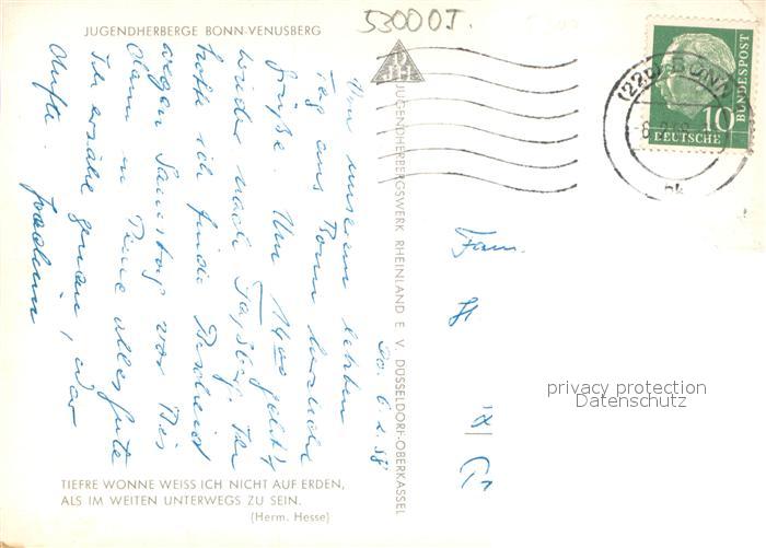 73699007 alte Postkarte Venusberg Bonn Jugendherberge postalisch gelaufen Erhaltung siehe scans [FriedD77] KatCode: 11110005314000