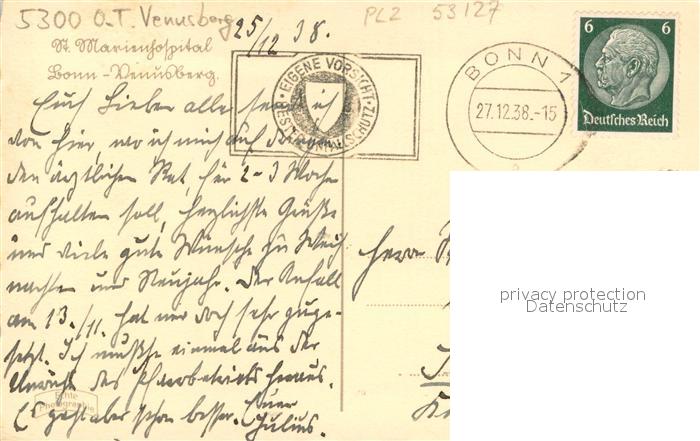 73706081 alte Postkarte Venusberg Bonn St. Marienhospital Aussen postalisch gelaufen Erhaltung siehe scans [LiesaD40] KatCode: 11110005314000