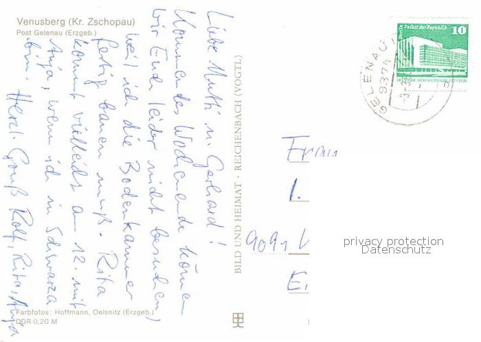72654840 alte Postkarte Venusberg Zschopau Pension Waldhof postalisch gelaufen Erhaltung siehe scans [AndreD76] KatCode: 11110014181370