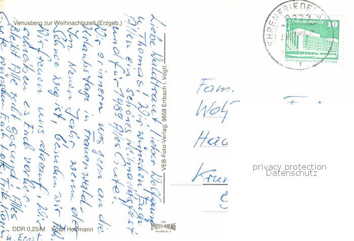 72729702 alte Postkarte Venusberg Zschopau zur Weihnachtszeit postalisch gelaufen Erhaltung siehe scans [FriedD77] KatCode: 11110014181370