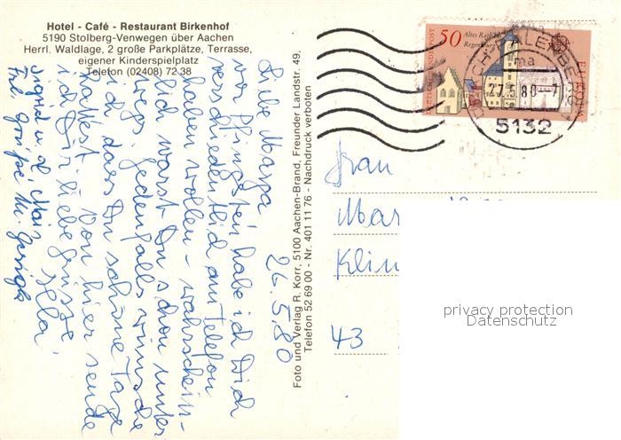 73204464 alte Postkarte Venwegen Hotel Cafe Restaurant Birkenhof postalisch gelaufen Erhaltung siehe scans [FriedD77] KatCode: 11110005354032
