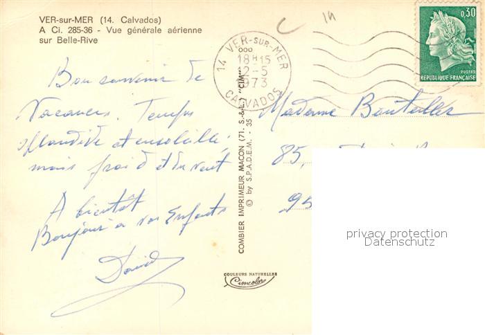 13538874 carte postale Ver-sur-Mer Vue generale aerienne sur Belle Rive postalisch gelaufen Erhaltung siehe scans [WerneD78] KatCode: 11170014114739