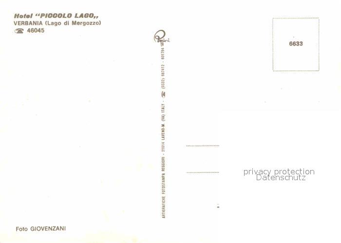 Verbania Hotel Piccolo Lago Lago di Mergozzo postalisch nicht gelaufen Erhaltung siehe scans [FriedD77]