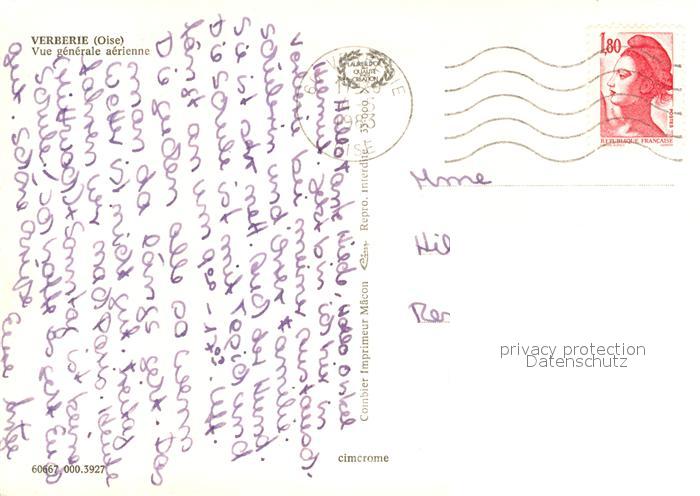 13153278 carte postale Verberie Vue Generale aérienne postalisch gelaufen Erhaltung siehe scans [FriedD77] KatCode: 11170060460667